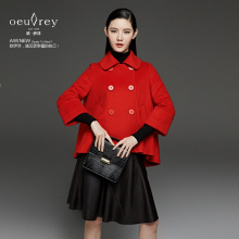 欧伊洋新款秋冬女斗篷外套毛呢外套短款 翻领双排扣呢子大衣