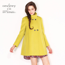 欧伊洋2015年秋冬中长款女毛呢外套 POLO领直筒羊毛大衣WD4D2153