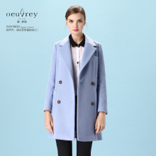 欧伊洋春装新款双排扣西装领中长羊毛呢子大衣外套女WD4D2158