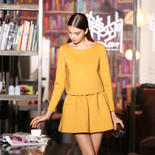 欧伊洋秋冬款空气层面料百搭纯色通勤黄色休闲套装WD4T2196
