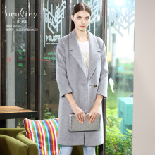 欧伊洋春装新款女装 西装领双排扣中长 羊毛呢大衣WD4D2162
