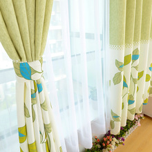 绿色心跳清爽客厅卧室飘窗落地窗窗帘成品 韩式田园绿色窗帘定制