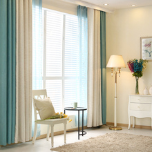 现代简约纯色棉麻拼接窗帘百搭客厅卧室落地窗飘窗半遮光窗帘定制