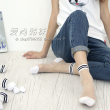 韩国短丝袜夏季袜子棉底条纹短袜薄透明玻璃丝水晶黑白色女袜