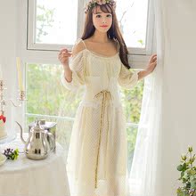2016春夏装新款仙女清新甜美绣花网纱淑女连衣裙蕾丝雪纺气质长裙