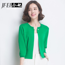 今妃2017春装新款薄款针织衫 镂空网眼开衫女防晒衫短款小外套