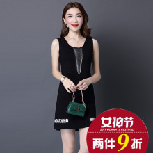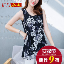 2017夏季新款品牌女装中长款无袖吊带背心裙刺绣网纱大码外穿上衣