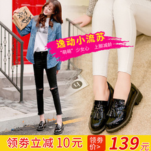 2017年新款英伦学院风小皮鞋女春复古中跟单鞋厚底乐福鞋漆皮女鞋