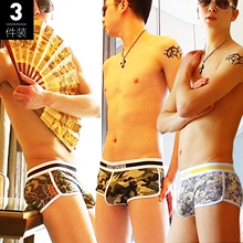3条炫彩男士内裤个性纯棉低腰性感四角裤头全棉U凸平角内裤衩四角
