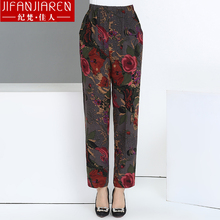 中老年女夏季裤子薄款人造棉女裤棉绸花色裤子家居松紧宽松老人裤