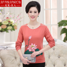 2016秋季新款中年人妇女妈妈装长袖T恤上衣中年人40-50岁打底衫
