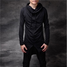 春秋装下摆开叉堆领长袖T恤 韩版时尚修身上衣发型师潮男个性男装
