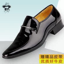 高档品牌男士皮鞋真皮头层牛皮商务正装尖头亮皮结婚鞋新郎鞋韩版