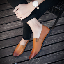 新款休闲皮鞋男英伦真皮尖头商务休闲鞋潮流鞋男青年一脚蹬男鞋子