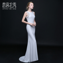 2017新款镶钻性感礼服长款修身生日晚礼服宴会小拖尾年会主持人女