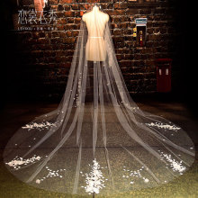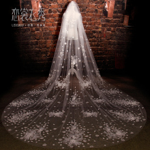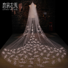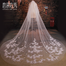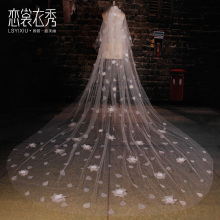 恋裳衣秀新款韩式唯美蕾丝花朵镶钻大拖尾头纱超长款新娘婚纱头纱