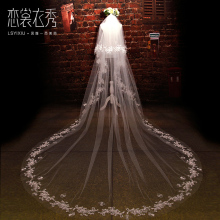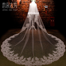 恋裳衣秀新款韩式三圈蕾丝花边大拖尾头纱超长款新娘结婚婚纱头纱