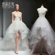 2017新款前短后长抹胸蕾丝花朵修身显瘦新娘结婚婚纱礼服女小拖尾
