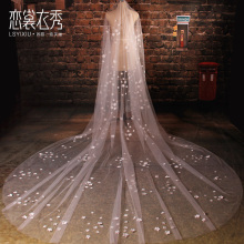 恋裳衣秀韩式新款唯美珍珠花朵超仙大 拖尾头纱超长 新娘婚纱头纱