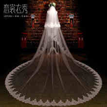 恋裳衣秀新款韩式verywang蕾丝花边大拖尾头纱超长款新娘婚纱头纱