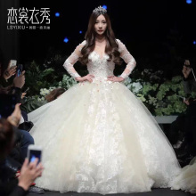 2017春秋新娘婚纱礼服明星同款长袖大码抹胸结婚婚纱齐地拖尾婚纱