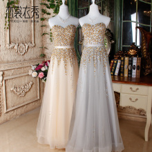 2017新款韩版晚礼服长款亮片钻抹胸宴会修身晚会敬酒服订婚礼服裙