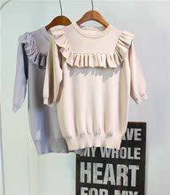 针织衫圆领套头中袖冰丝荷叶边宽松学院风木耳边韩国春夏新款女