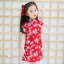 旗铂女童旗袍夏短袖碎花连衣裙中大童纯棉中式汉服儿童旗袍演出服