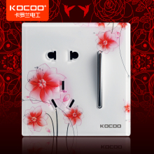 KOCOO卡罗兰I5系列 一开五孔 透明水晶面板 艺术开关花纹开关面板