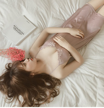 韩版春夏季女士带胸垫性感睡裙俩件套 吊带情趣诱惑蕾丝睡衣冰丝
