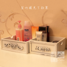 Zakka 杂货 欧式田园 木质做旧白色收纳盒 梳妆台桌面木制首饰盒