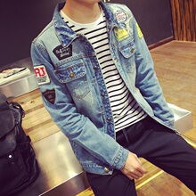春款男士牛仔外套男夹克男衣服破洞复古青年牛仔褂上装外套韩版潮