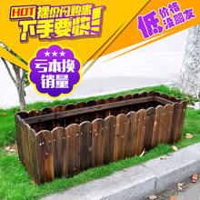 防腐木花箱 碳化大种菜花盆木质花盆 实木长方形花盆 木栅栏花槽