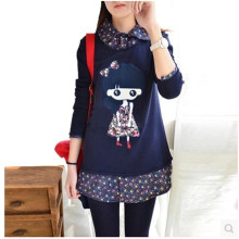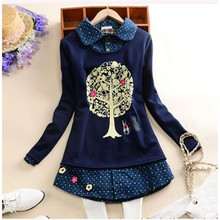 【天天特价】大码学生可爱猫头鹰刺绣衬衫拼接假两件加绒加厚卫衣