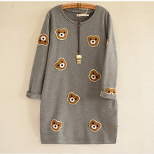 森女系大码女装2016秋冬甜美打底上衣加绒加厚小熊中长款宽松卫衣