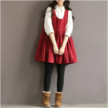 森女系日系小清新学院风复古无袖纯色灯芯绒背心裙显瘦百搭打底裙