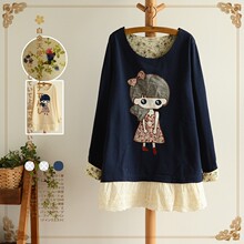 大码加绒加厚打底衫卫衣长袖t恤日系森女风院风甜美小女孩连衣裙