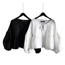 2017春夏新款韩版气质灯笼袖衬衫百搭短款上衣女士白色衬衣两件套