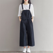 森女系牛仔吊带裤 学院风背带裤大码宽松文艺复古时尚百搭阔腿裤