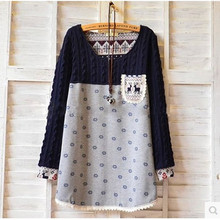 胖mm 日系森女系2015秋冬新款风雪花小鹿宽松大码拼接卫衣毛衣女