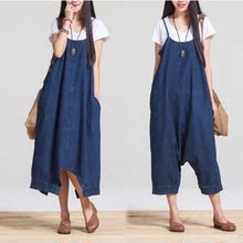 【天天特价】2016夏森女系加肥大码宽松背带裤显瘦棉麻哈伦连体裤