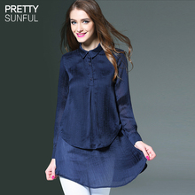 PT2017春季新款欧洲站大码衬衫女宽松显瘦上衣中长款雪纺衫衬衣
