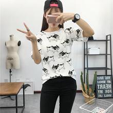 春秋季新款韩版女装宽松显瘦外穿长袖T恤女学生上衣服打底衫