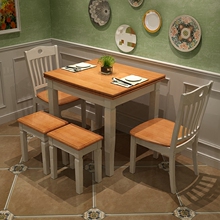 橡木实木餐桌椅组合 白色地中海长方形餐桌 小户型6人饭桌西餐桌