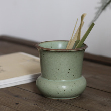 雅集堂 陶泥茶道筒工具筒渣斗建水 汝绿 茶道配件