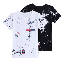 童装男童短袖t恤纯棉中大童夏季体恤衫泼墨粉打底衫薄汗布衫学生