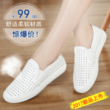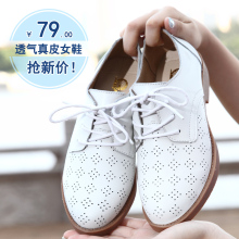 2017夏季新款透气网鞋女平跟平底单鞋真皮镂空女鞋小白鞋女士皮鞋