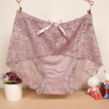 高腰外贸加大码内裤女胖MM性感200斤网纱蕾丝棉三角057