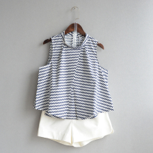 昕瑞2017夏韩版立领短款A字版气质小清新条纹衬衫宽松上衣女17128