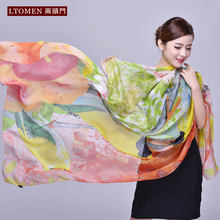 两头门 纯真丝长丝巾100%桑蚕丝超大雪纺围巾春夏防晒披肩礼盒装